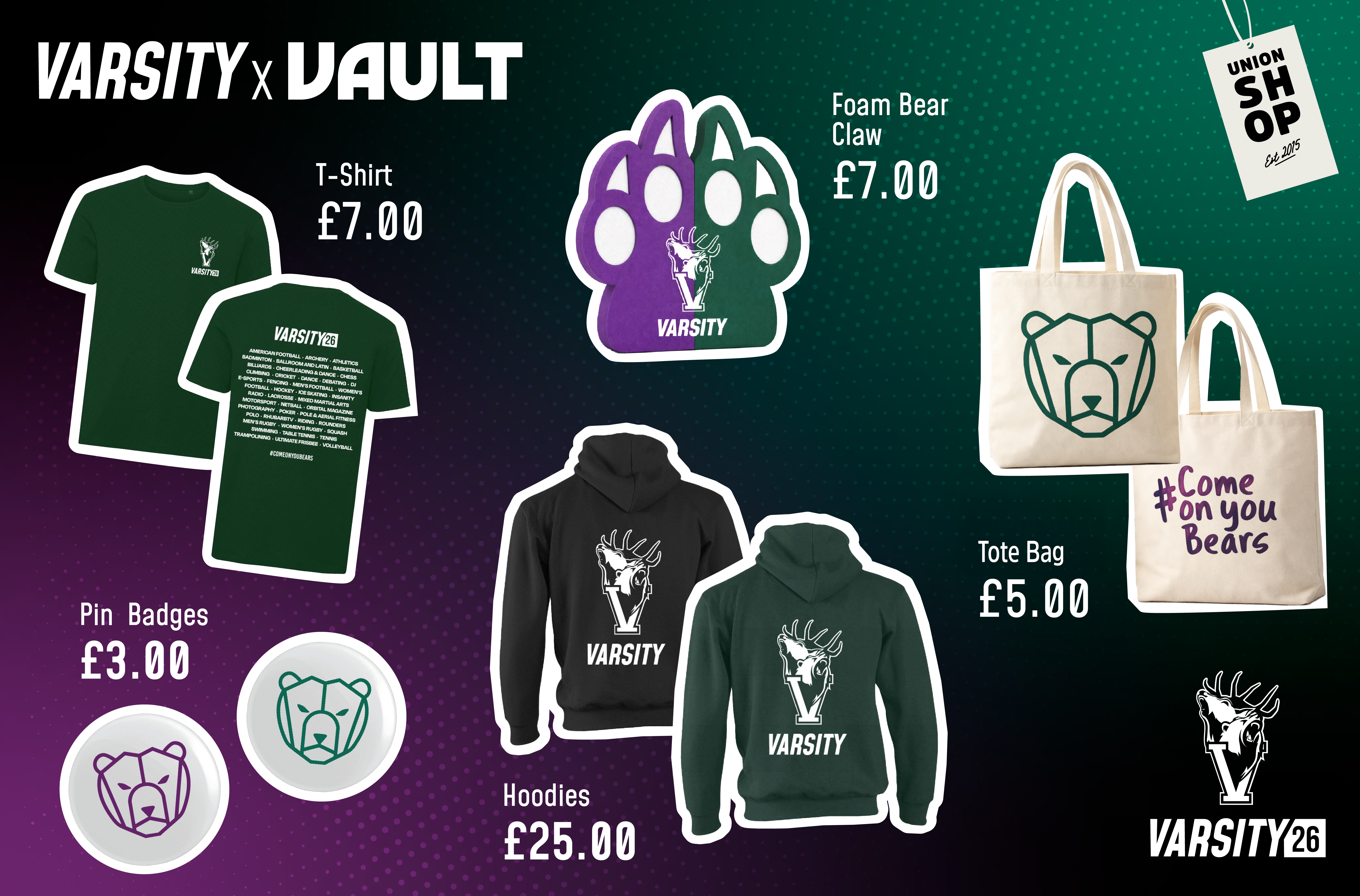 Varsity merch is available exclusively from the SU Shop and is not sold online.