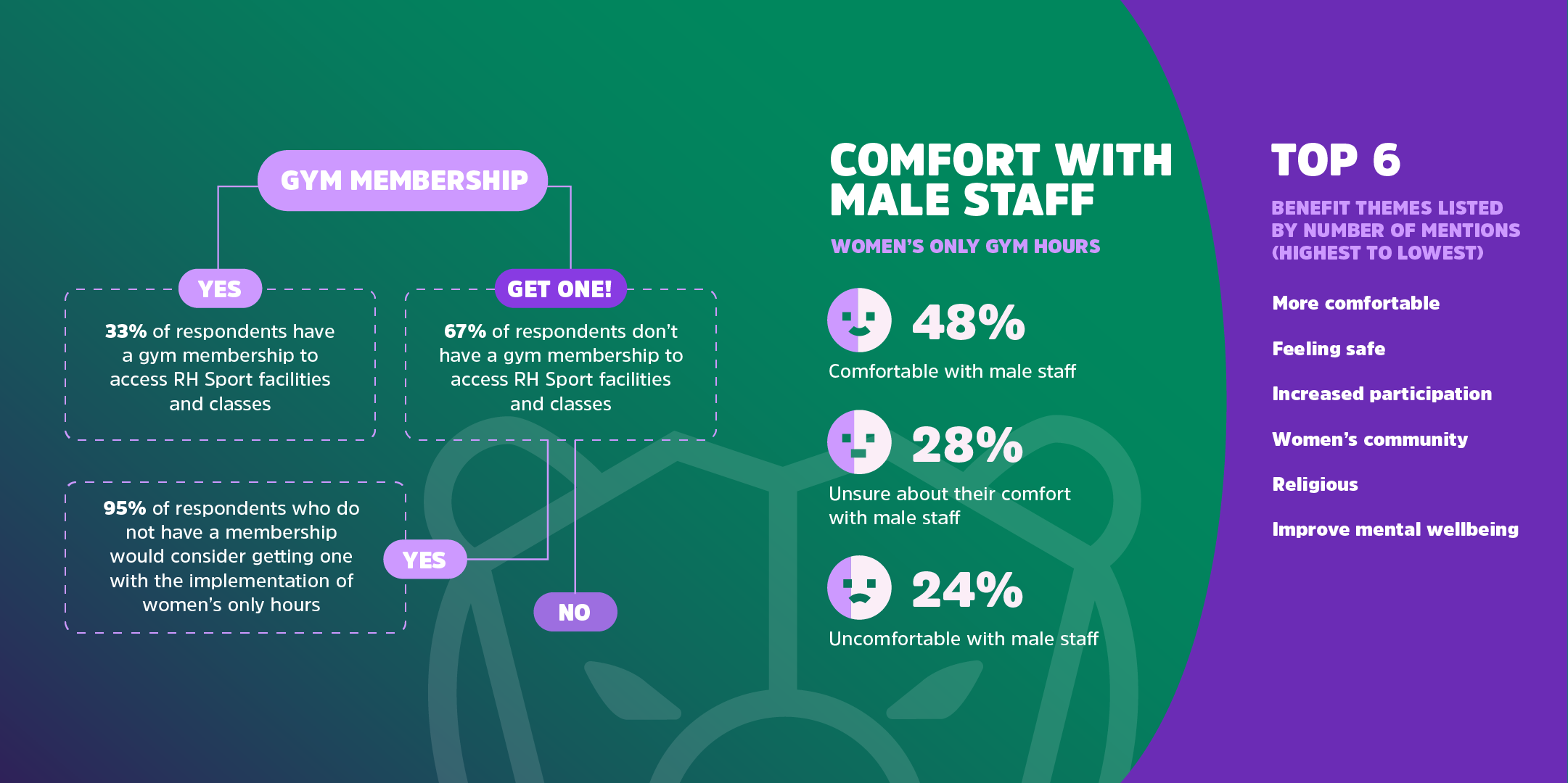 Following these findings, and in collaboration with ALS, the Women’s Learn 2 Lift class was launched every Tuesday throughout January. This was followed by a trial of Women’s Gym Hours in February, which continued into March and it has now become a permanent feature every Wednesday and Friday between 9:00am - 10:00am!